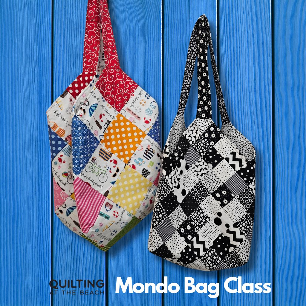 The Quiltsmart Mondo Bag is a large, roomy tote known for its easy construction using gridded interfacing, resulting in perfectly aligned seams, ideal for quilters. It’s made from 2.5-inch squares, creating a substantial bag with a roughly 10″ square bottom and 17″ tall sides, perfect as a weekend bag, diaper bag, or for carrying quilts.