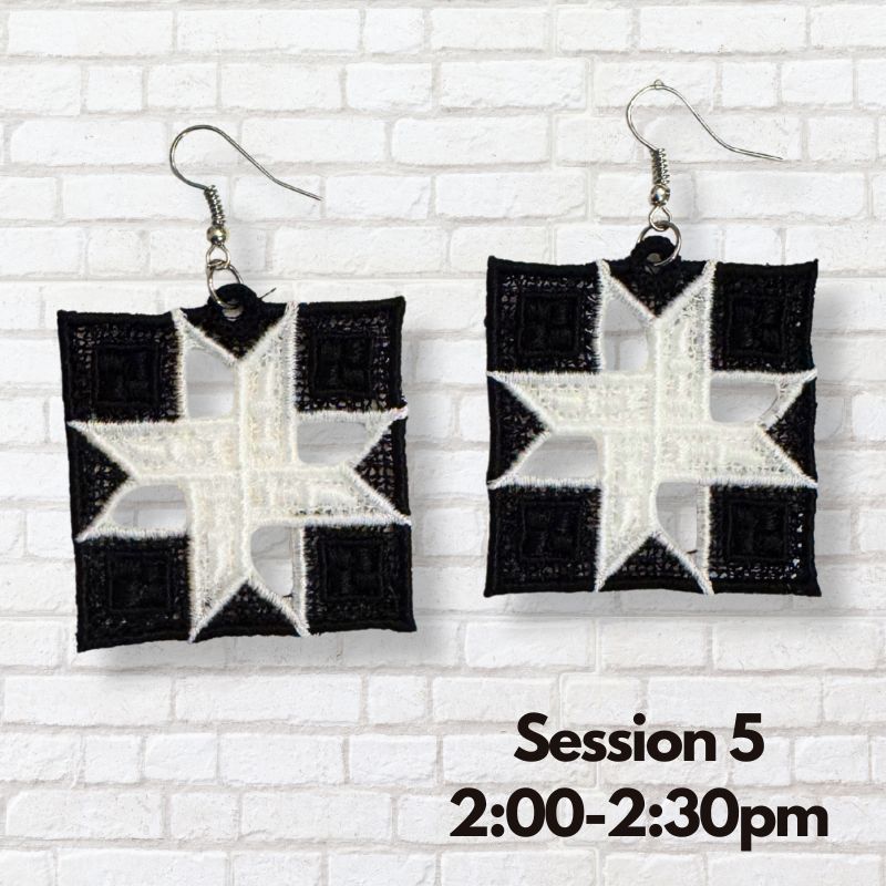 In this one-on-one creative session, you’ll learn the Free-Standing Lace (FSL) technique and stitch one complete pair of boutique-style lace earrings, created entirely in the hoop using thread and stabilizer. No fabric backing. Just embroidery magic.