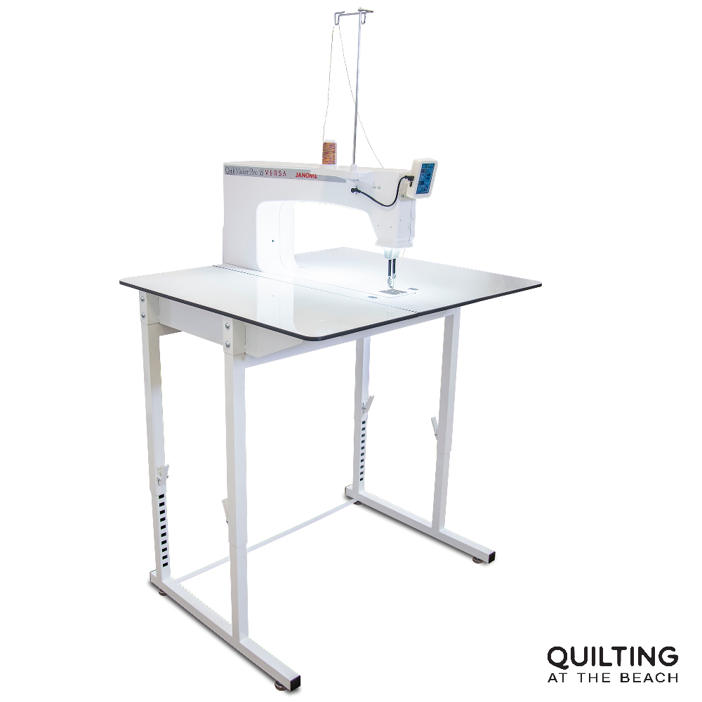 The Quilt Maker Pro 18 Versa offers even more quilting options to you with its compact size & versatility of use. The Versa is a stationary quilter that can be set up as a stand-up table or adjusted to allow sewists to quilt in the seated position.