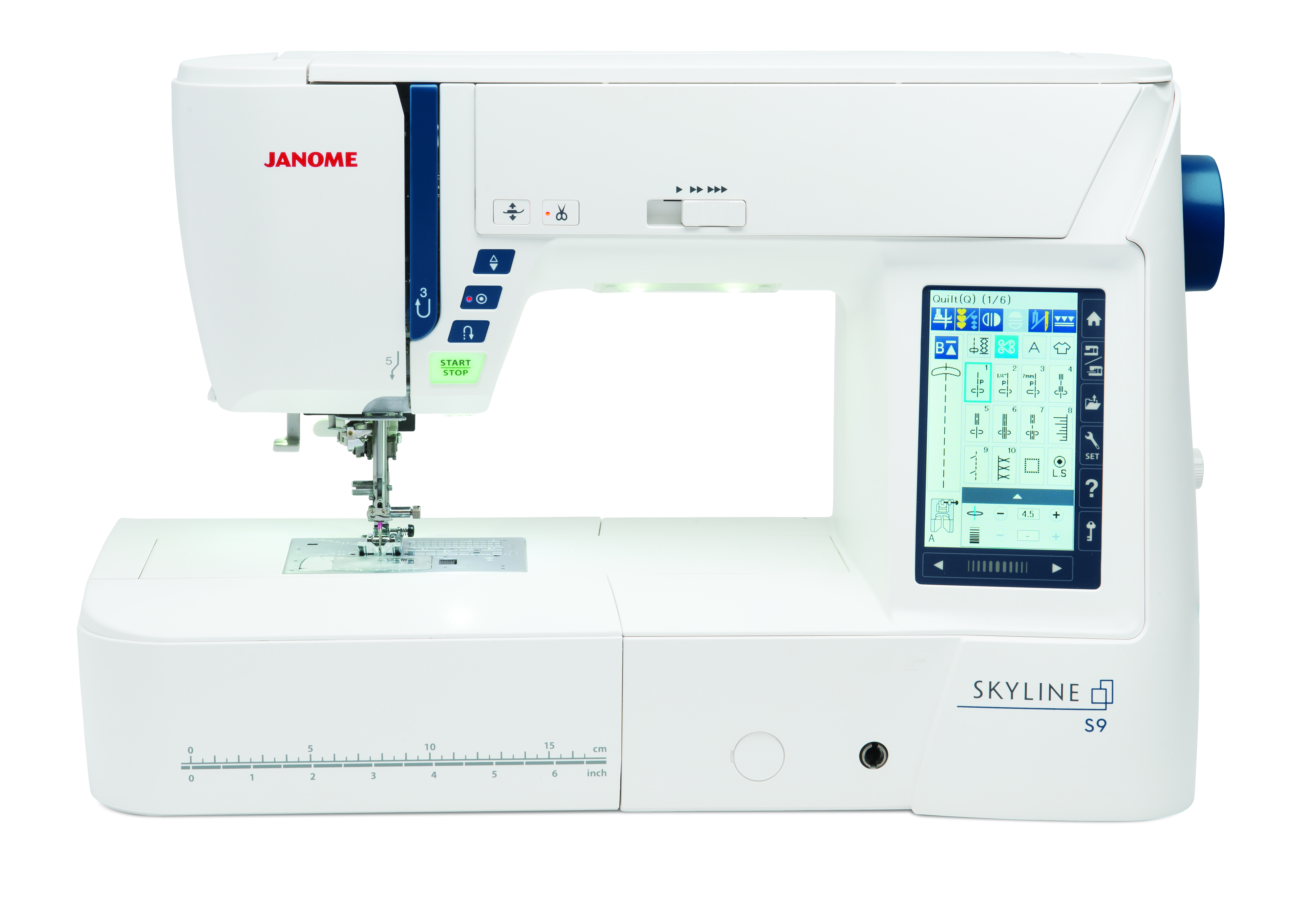 Enjoy choosing up to 250 embroidery designs, including 40 exclusive designs by Anna Maria Horner along with 300 stitches. With a maximum embroidery size of 6.7″ x 7.9″ and sewing speeds of 1000 SPM, the Skyline S9 provides a full suite of powerful capabilities to ensure all projects are beautiful, yet easily executed. Navigating through these great features is easy with the Skyline S9’s LCD color touchscreen.